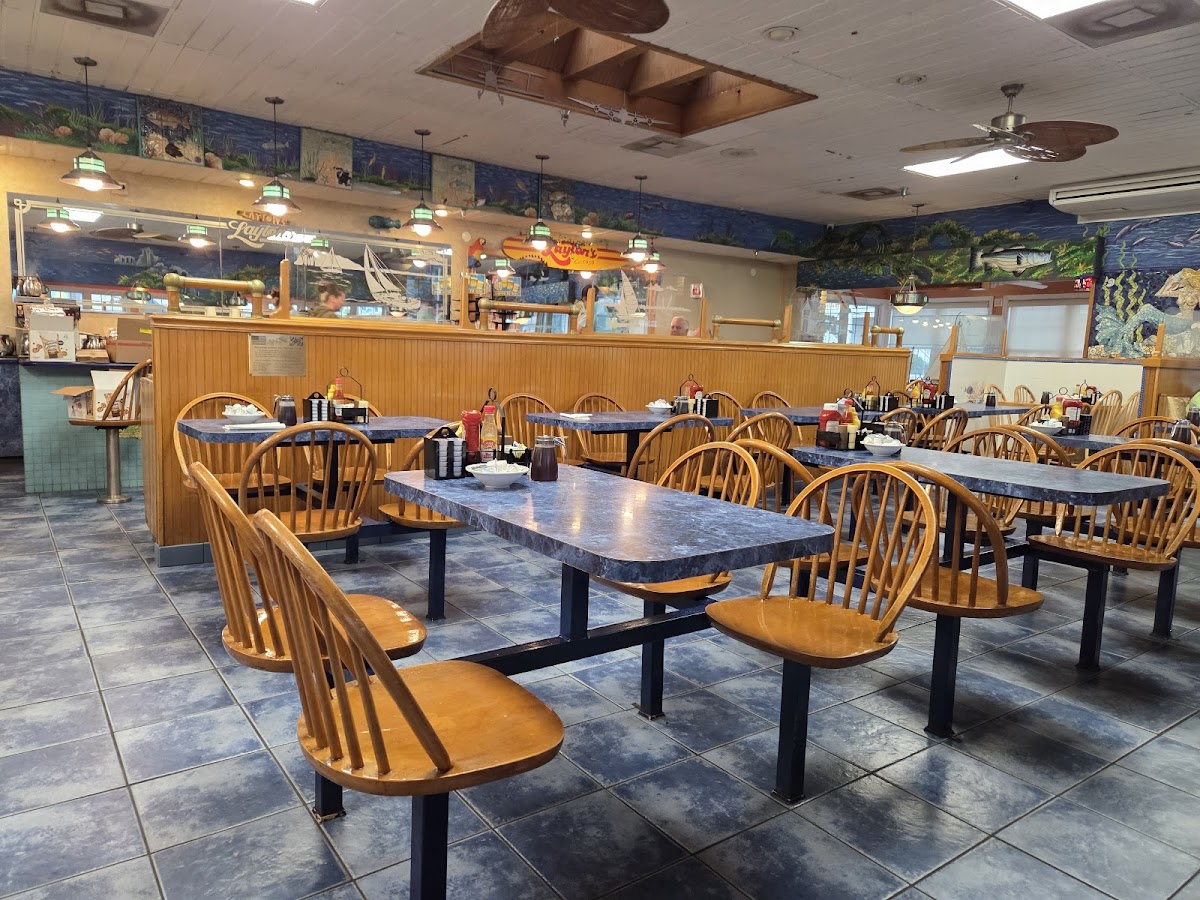 Friends visiting from Baltimore once insisted we try something lighter, so we split a turkey club and a side of home fries. The turkey was real roasted breast, not deli slices, and the fries came out hot and seasoned just enough. Their lunch and dinner options lean classic American: burgers, meatloaf, roast beef, and seafood baskets that pull from the nearby Atlantic. It’s not flashy cuisine, but it’s comfort food done with care.
